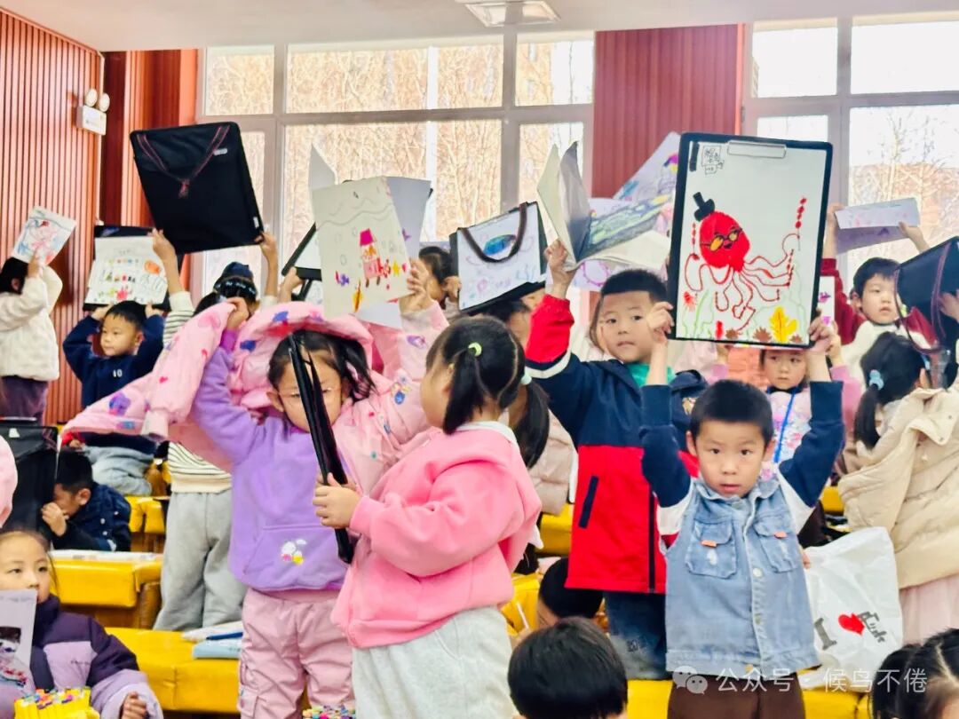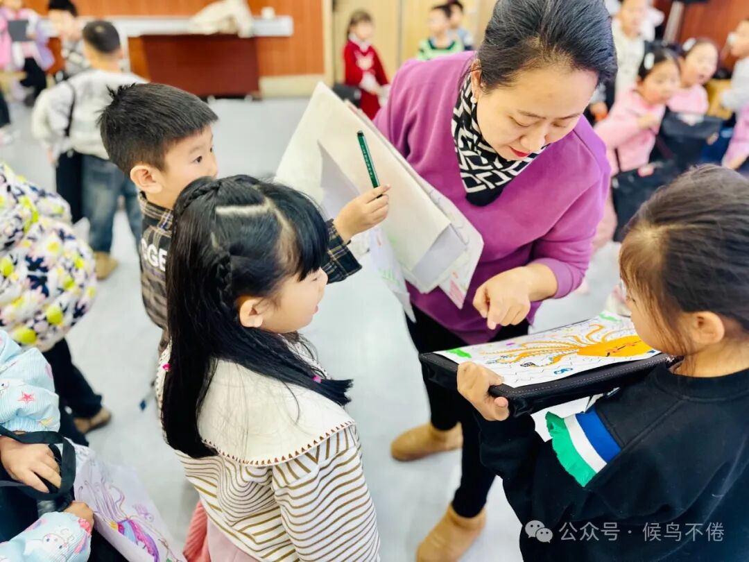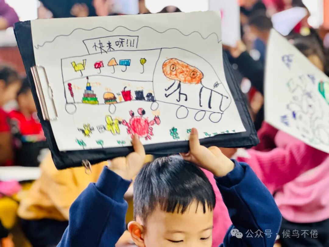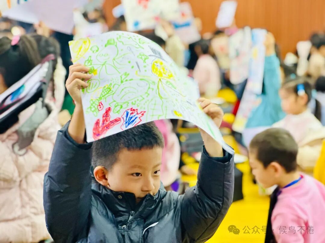 对于美术,我是小白。镜头里孩子们的画板,我只能看个热闹,看不出门道。但是眼前活生生的孩子,专注的,旁若无人,兴奋的,交头接耳,动作快的,一个个高高举起自己的作品。一定是做对了什么。孩子对了,教育就对了。给我留下最深印象的,是一个男生,他大概忘记带彩笔,但没有哭鼻子,随机应变用铅笔。虽然他的作品色彩单一,但是他却同样骄傲地举起他的画,对着我的镜头,示意我给他拍照,见我拍了,他立即又说:“老师,我还有一张!”原来背面也画了一幅。我相信,他的心里,一定是洒满了七彩阳光。