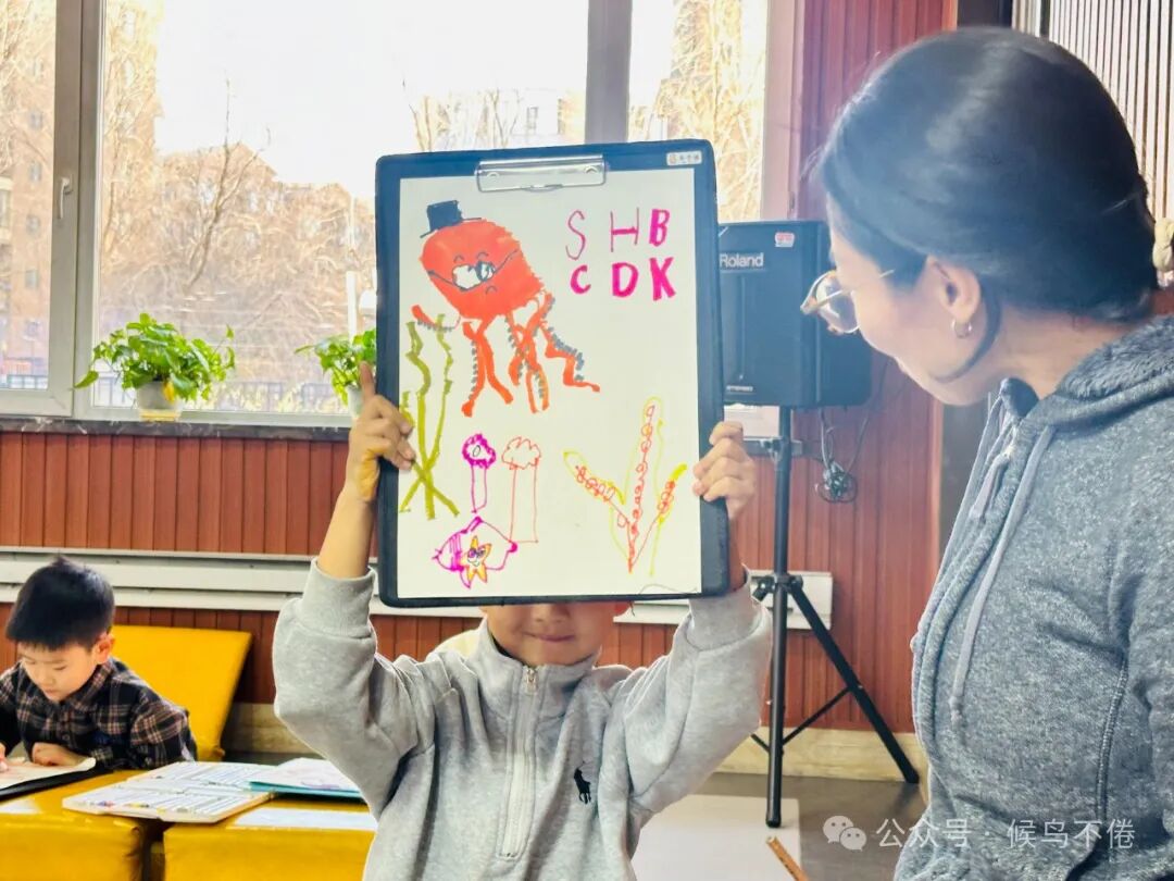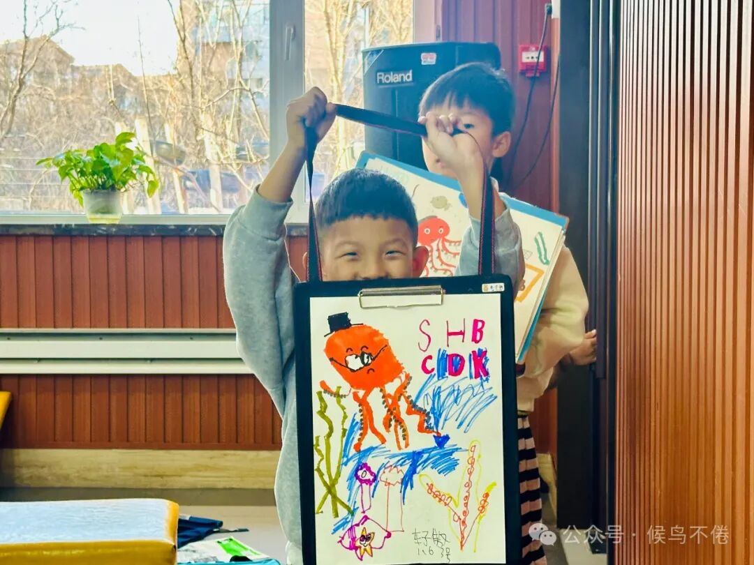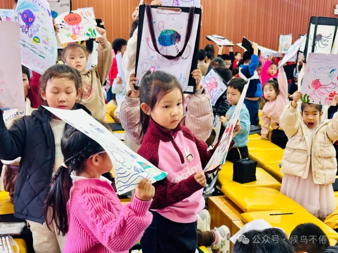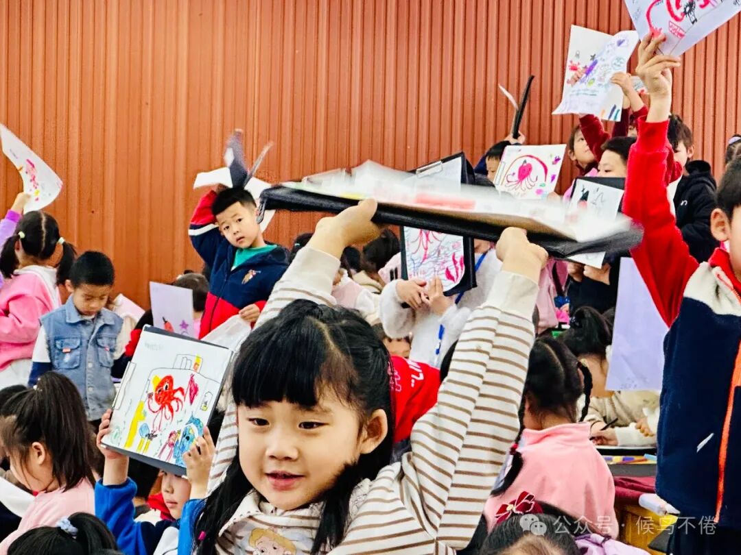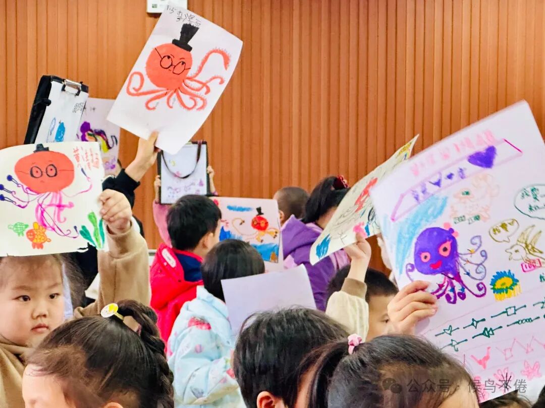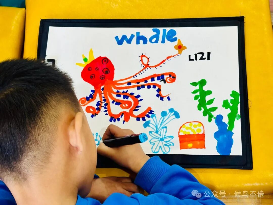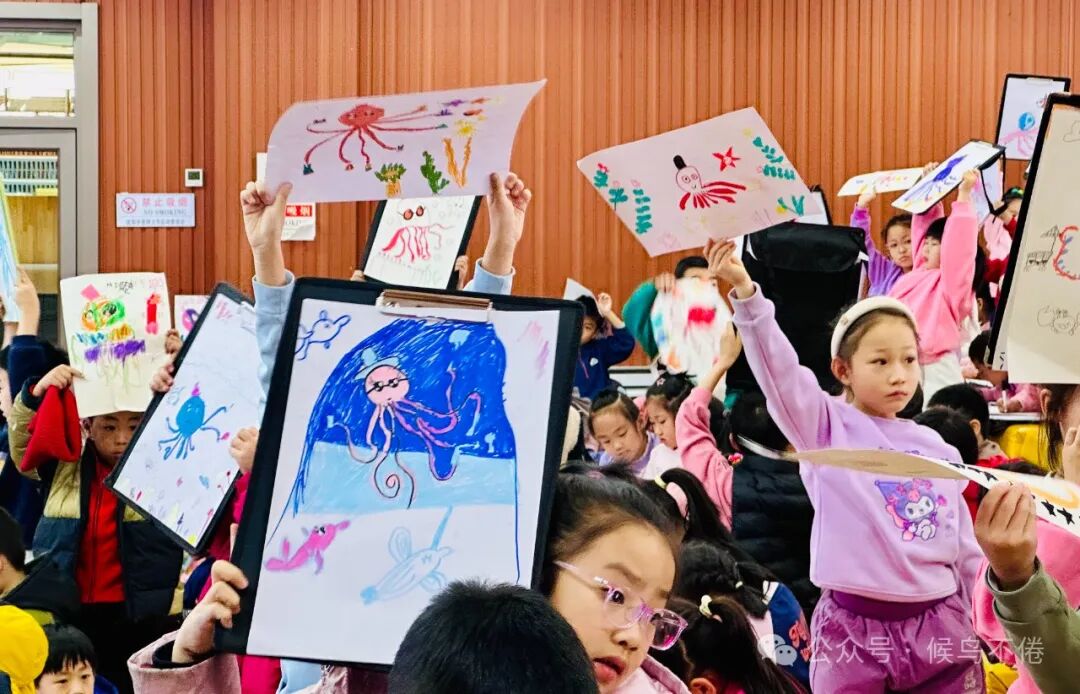 看孩子们的进度,这节课已经接近尾声。我一边忙着拍照,一边跟班主任老师聊了几句,“我们是一年级,六个班。美术大课每两周上一次。每次都有不同的主题,今天的主题是海洋,章鱼小卖部。一会儿李老师会用灵动币收购孩子们的作品.....”
