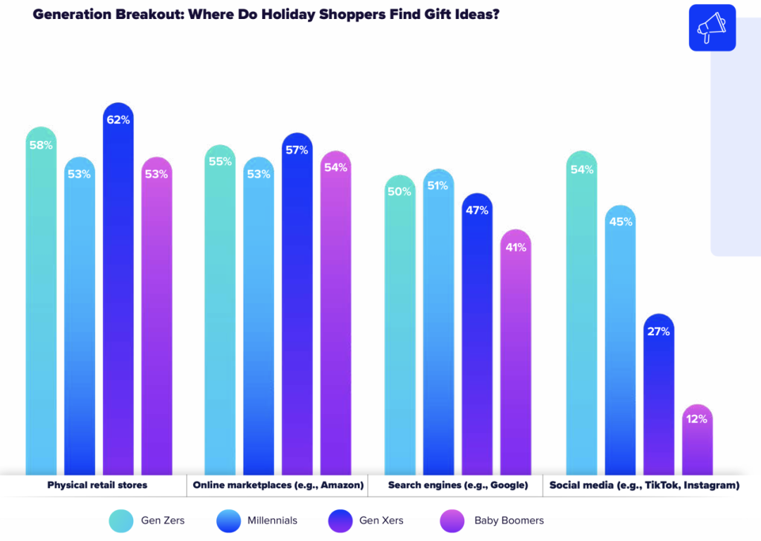 社交媒体与影响者营销:根据SALSIFY的调研,54%的Z世代,45%的千禧一代,和27%的X世代正在通过社交媒体渠道寻找礼物灵感。。利用Instagram、TikTok等平台,与本地影响者合作推广产品,能够有效增加品牌曝光度和客户转化率。此外,限时优惠、倒计时活动和独家折扣也是吸引消费者的重要方式。