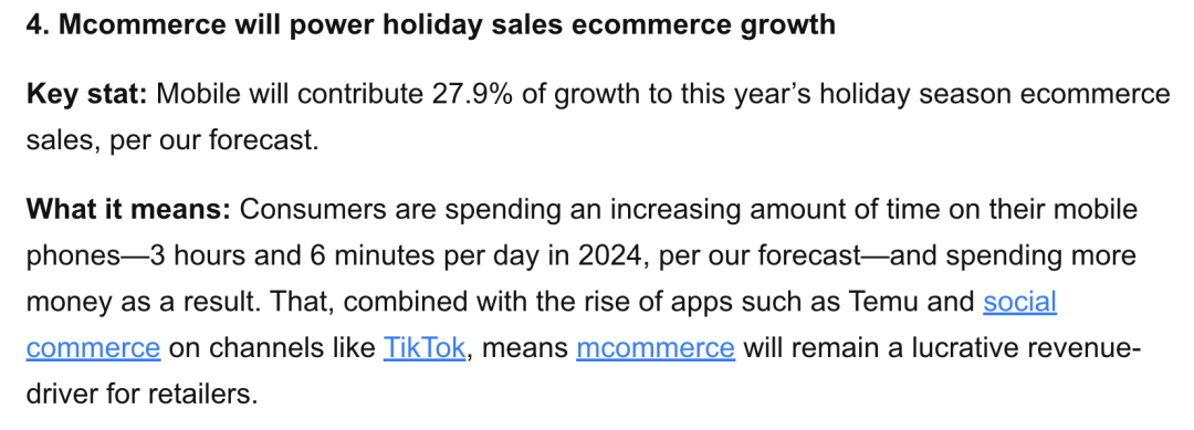 在假日季期间,网站的加载速度、稳定性和用户体验对跨境电商的销售表现至关重要。eMarketer的数据显示,移动商务预计将为今年假日电子商务销售的增长贡献近28%。