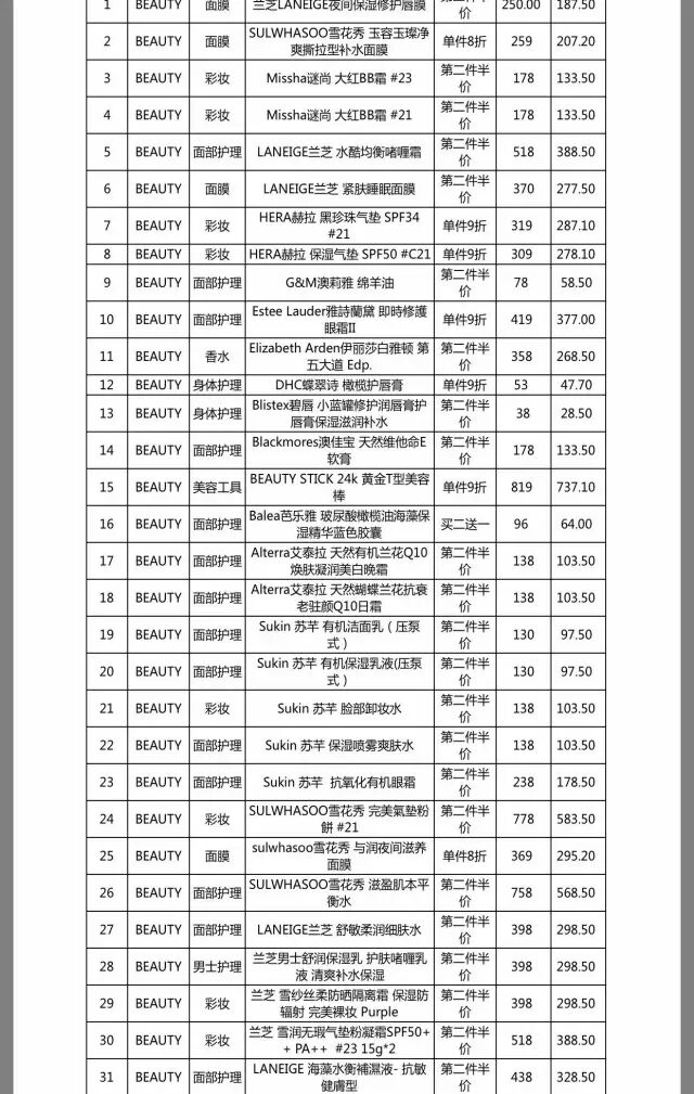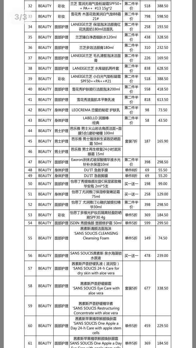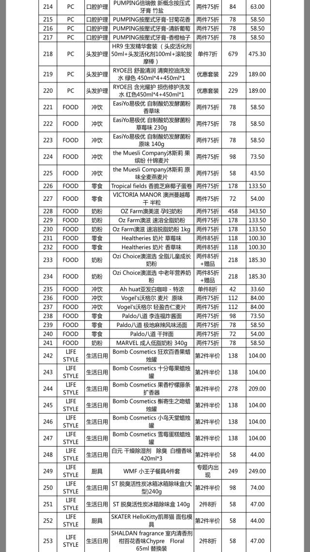所有折扣商品的清单全部贴出,小主们收好哦,各自圈重点做功课哈~