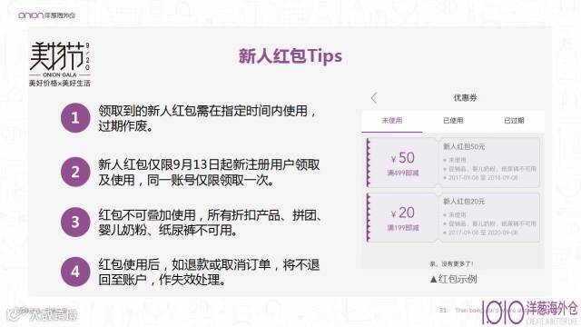 1、2017年9月13日00:00:00起,新注册的葱粉都可以领到新人红包!同一账号限领取一次;