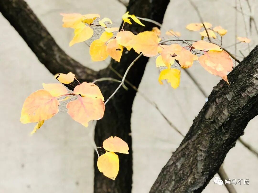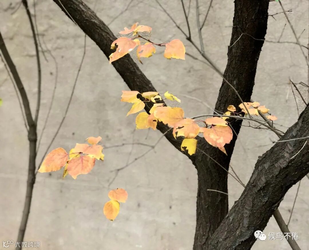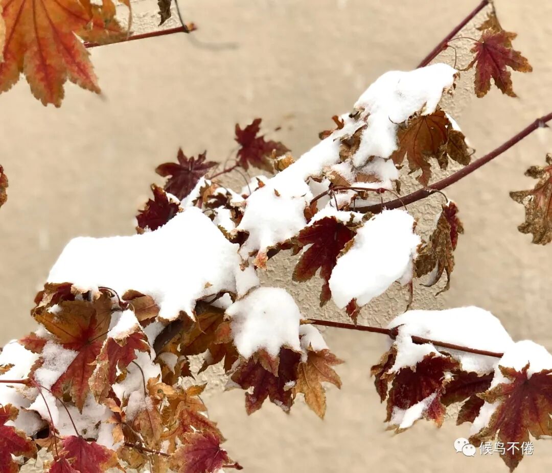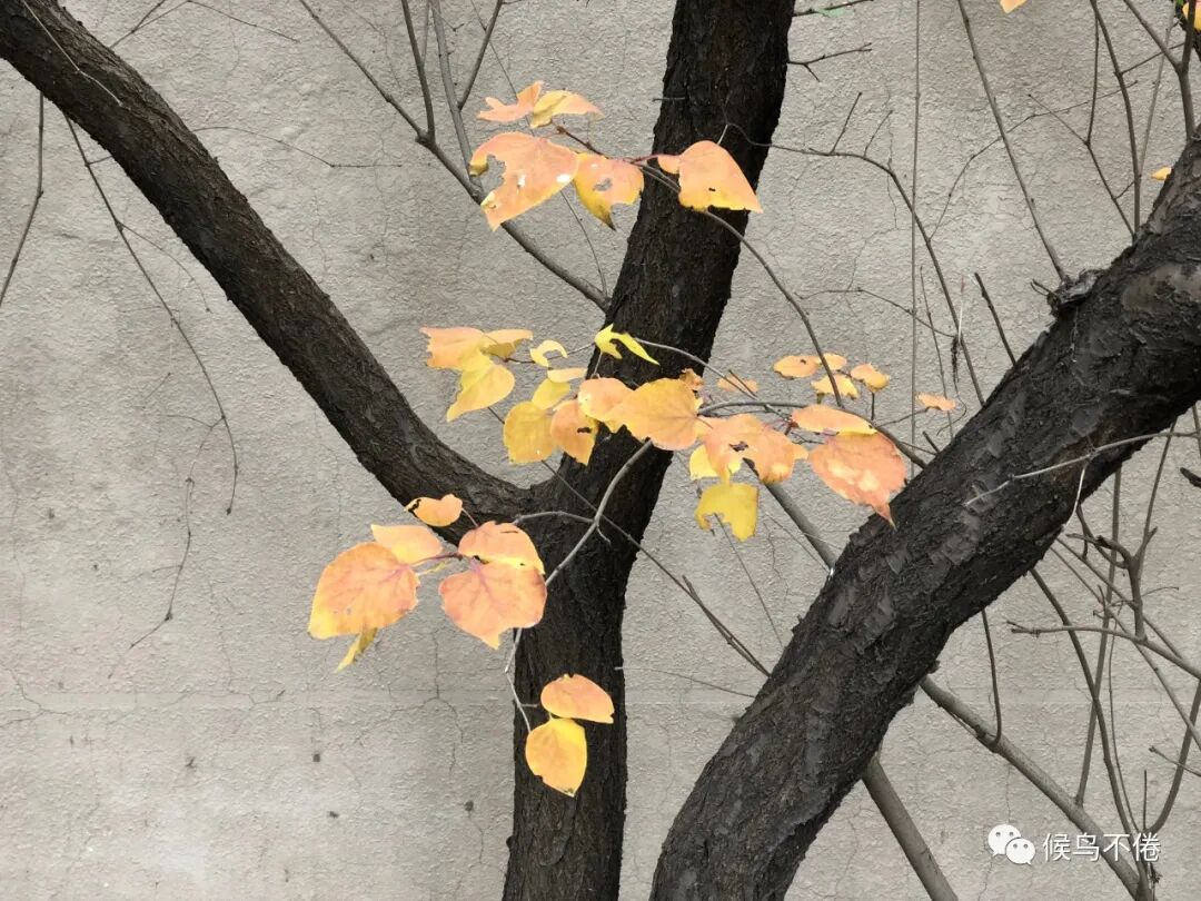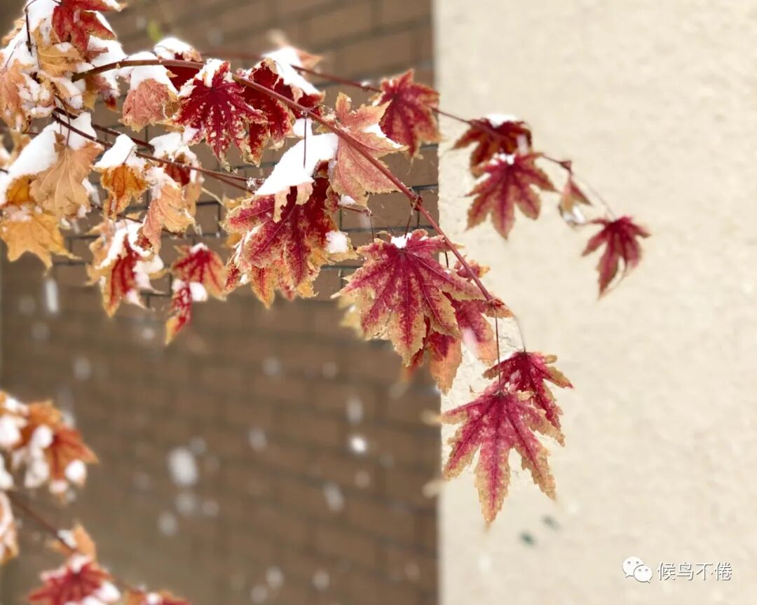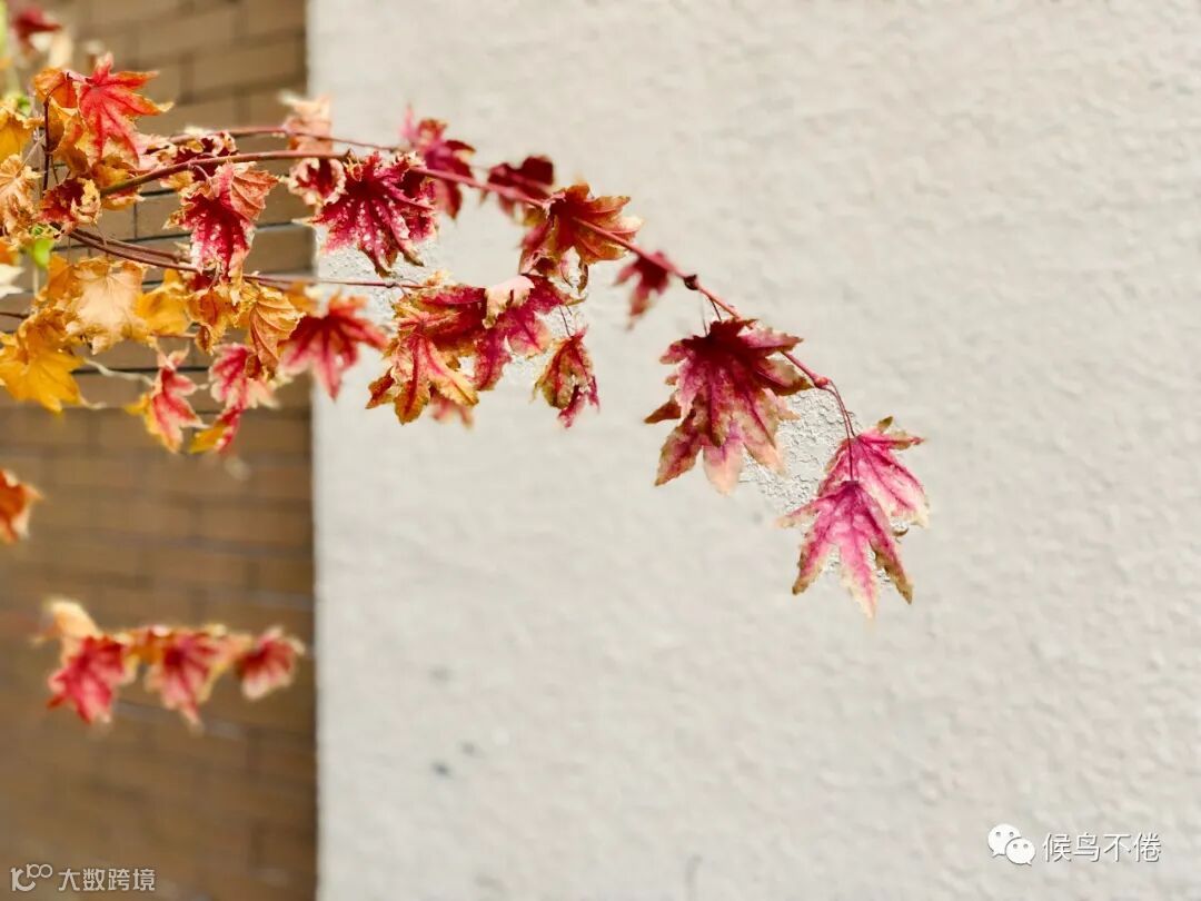 于我心有戚戚焉的,则是整个院子里堪称C位的三角地里那棵五角枫。春天,小院儿的风头被连翘、丁香、海棠竞相抢了去,五角枫只是谦逊低调不温不火地开枝、散叶,直到深秋,当所有的绿渐渐黯然失色,酝酿了整个春夏的五角枫,一夜之间喷薄出霜染的彤红之后,再斑斑驳驳地交相辉映出饱满的褐与黄,好似一幅巨大的油画,终于独自挑起了小院的颜值担当。
