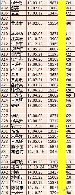 A组名单 (2014、2013年宝宝) 7月26日 am09:30-10:30