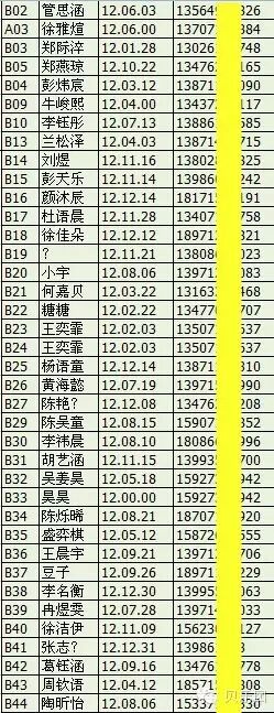 B组名单(2012年宝宝) 7月26日 am11:00-12:30
