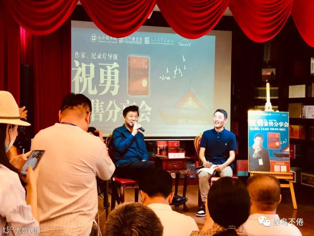 不多时,祝勇老师就说,站一会儿吧,估计他察觉到了,很多人可能看不见他和主持人的脸,会大大阻碍他们与听众的交流