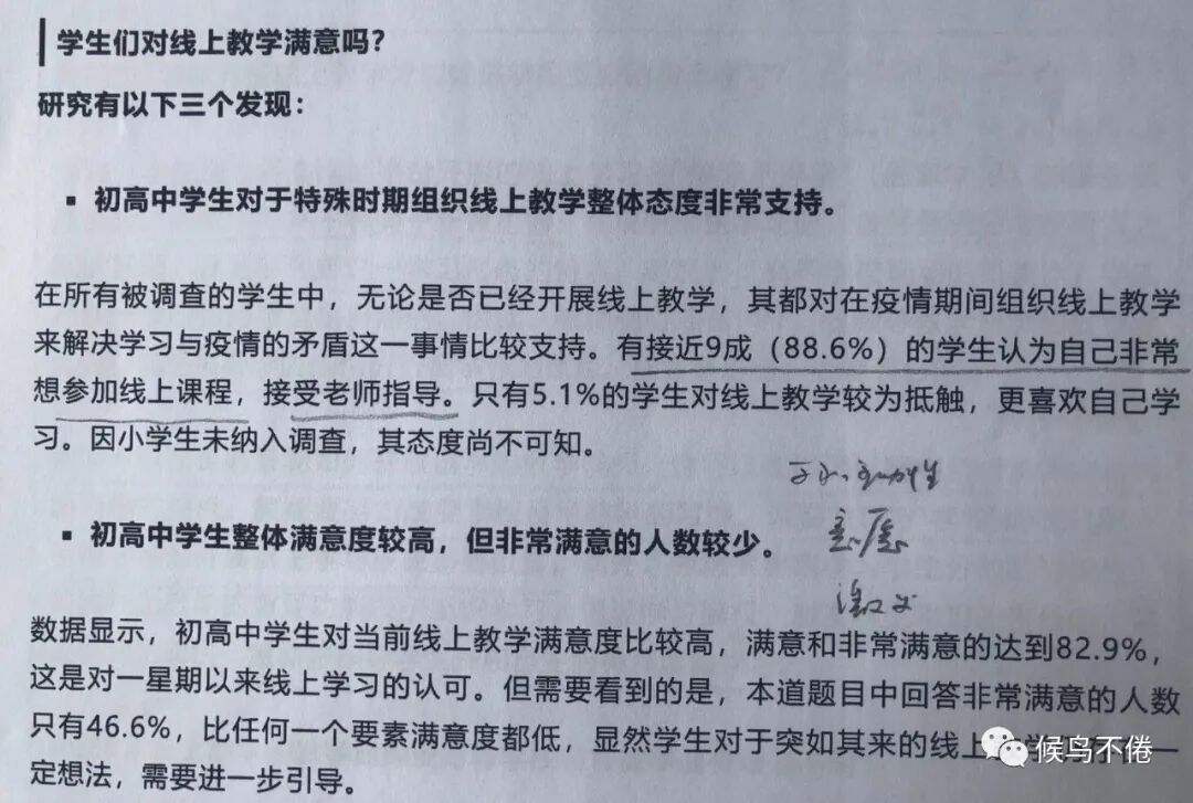 一周前,在人民教育公号上看到了首份疫情期间大规模线上教学调查报告,