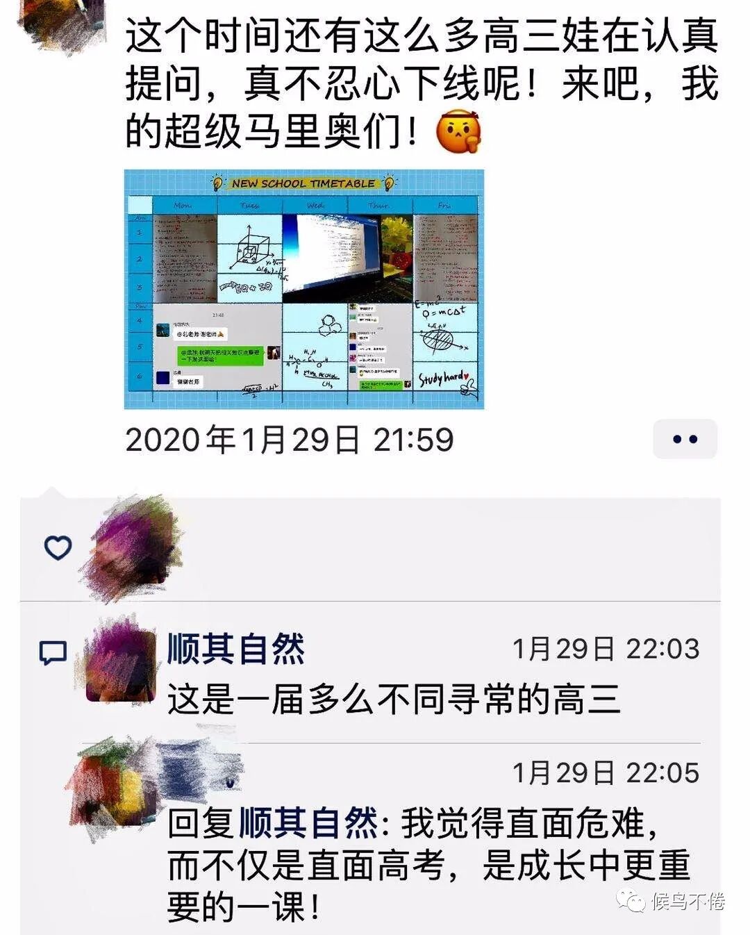 截屏发给家里两个备考的高三学生。