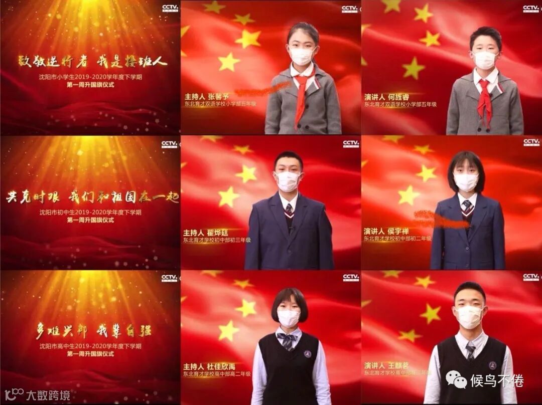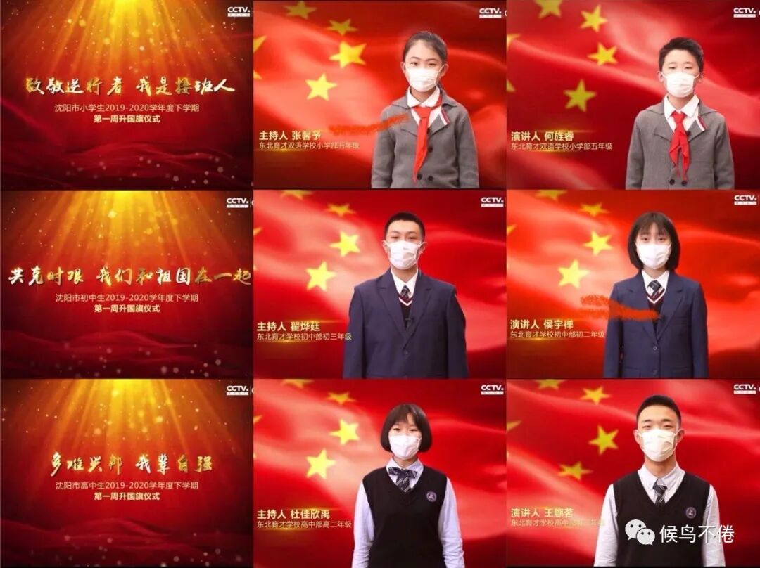 小初高分别举行线上开学升旗仪式。