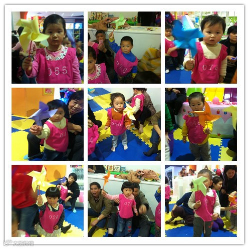 这是我做的风车,比一比谁的最漂亮呢!最后,我们来个大合影吧!