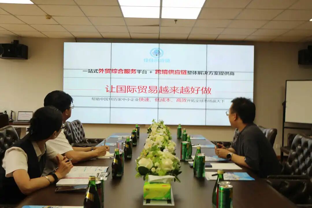 座谈会上,张雯女士为农行考察组一行讲解了佳佳供应链的外贸商业模式,并就“翼贸通”一站式外贸生态SaaS平台进行了详细讲解。
