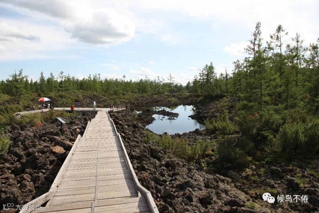 石塘林就是一个小小科普园。在石塘林,没有惊喜,没有感动,只有见识。带编号的熔岩丘,黝黑的石海,沉默的熔岩陷谷,将蓝天白云拥入怀中的偃石湖,在火山熔岩中扎根、依地而生的偃松林,像一只仰面朝天的开屏孔雀。