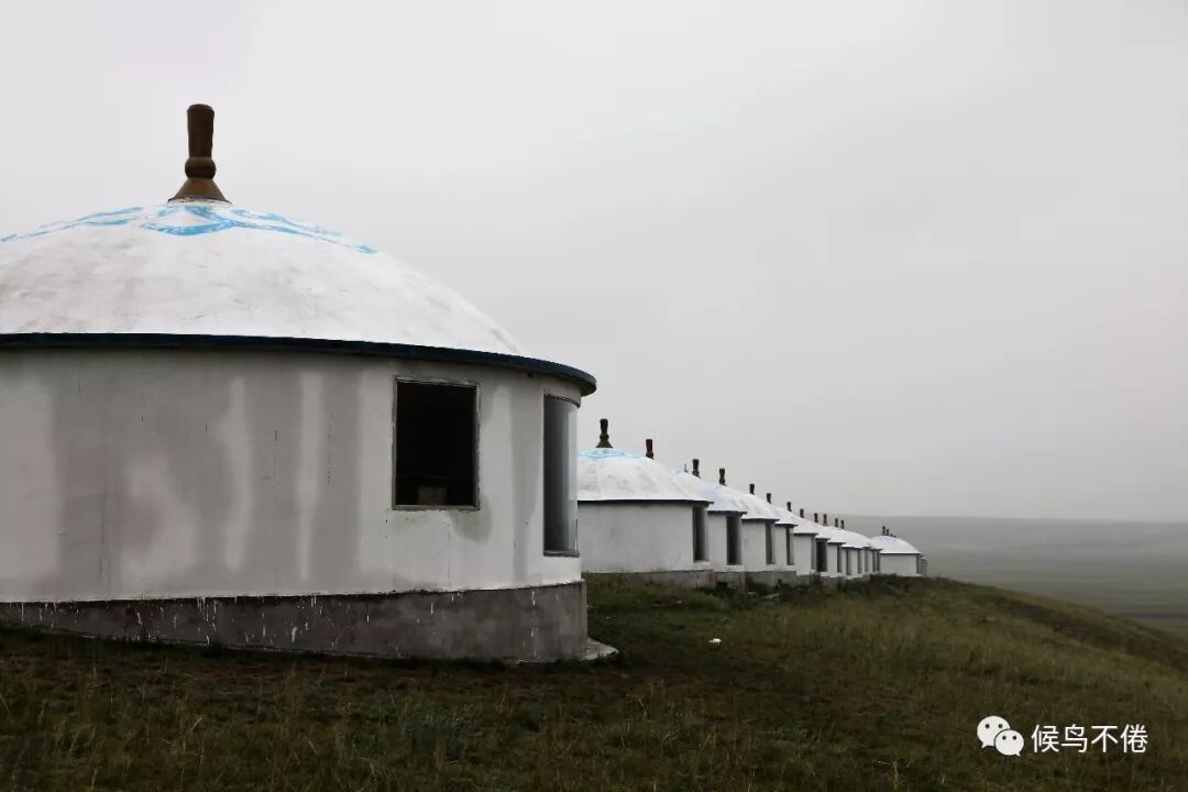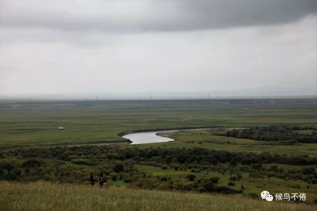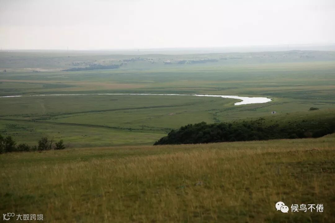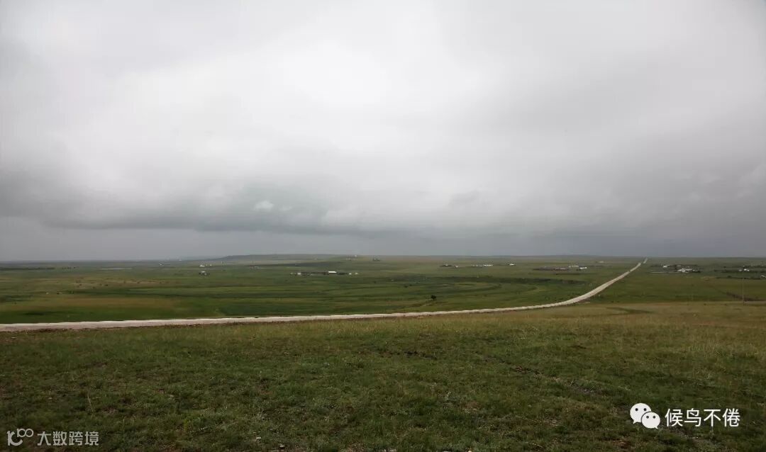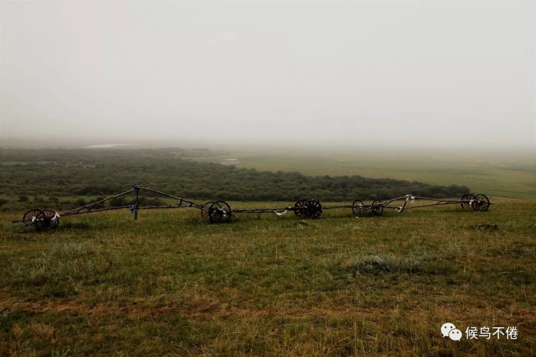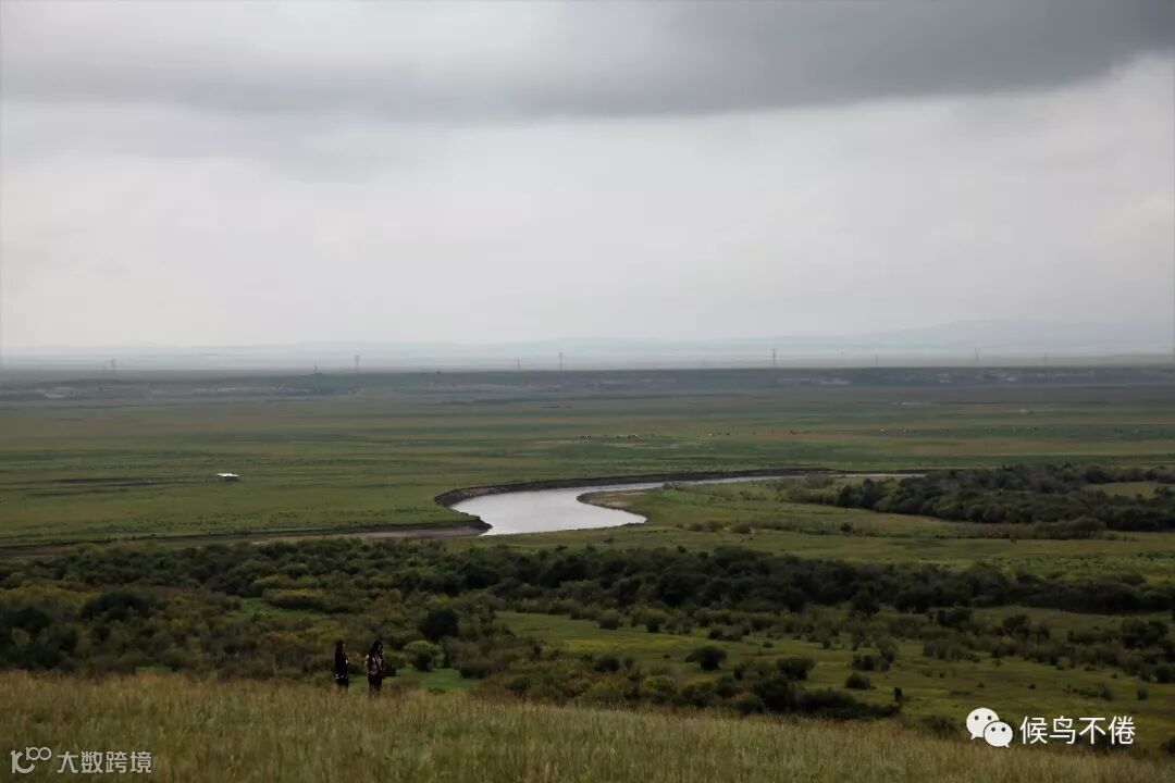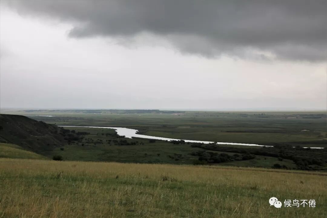 恨不能后脑勺也长了眼睛。没有太阳,我分不清方向,只能以敖包为界,正前方,左侧,大草原一望无际。到了这里,才真正懂得什么是一望无际。大概因为下雨,不见马群、牛群和羊群;右侧,远远地,起伏的山丘,被乌云染成了铅灰色,山丘和乌云几乎要亲吻在一起,再近一些,蜿蜒的伊敏河静静地穿过大草原,在我的镜头里泛着耀眼的银光,成为整个暗淡画面中唯一的亮色,衬得草原像涂了墨,这便是所谓的墨绿吧;身后,那个巨大的蒙古包(景区饭店)周围散落着数十个小的蒙古包,确切地说,是蒙古包形状的现代化旅店,可惜没有机会在这里过夜。