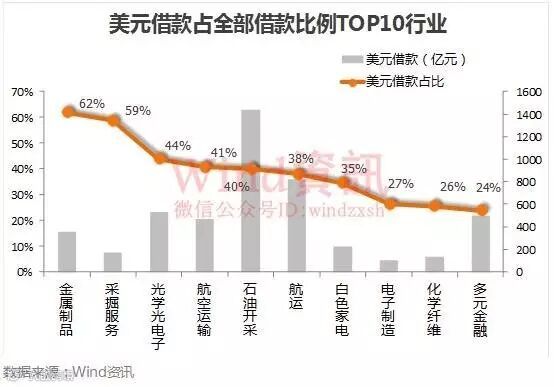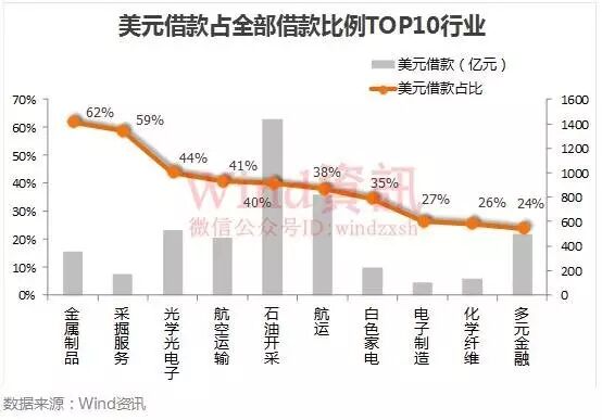 2016年年报显示,A股所有上市公司美元借款合计约8180亿元(折算人民币),占A股总借款8.38%。分行业看,美元借款占全部借款比例居前的行业有金属制品、采掘服务、光学光电子、航空运输、石油开采、航运、白色家电、电子制造、化学纤维、多元金融等行业。