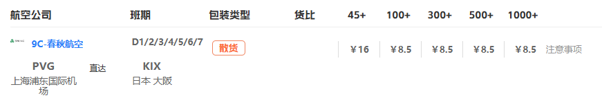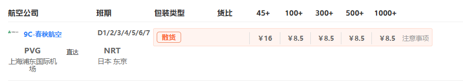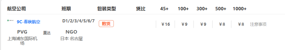 当然是赚钱啦!因此今天飞啊网航线推荐,量大管饱,带来四条9C-春秋航空的日本航线,直达东京、大阪、名古屋等热门城市,假期物流不打烊!跟着飞啊网一起看看中日空运的性价比之选吧!