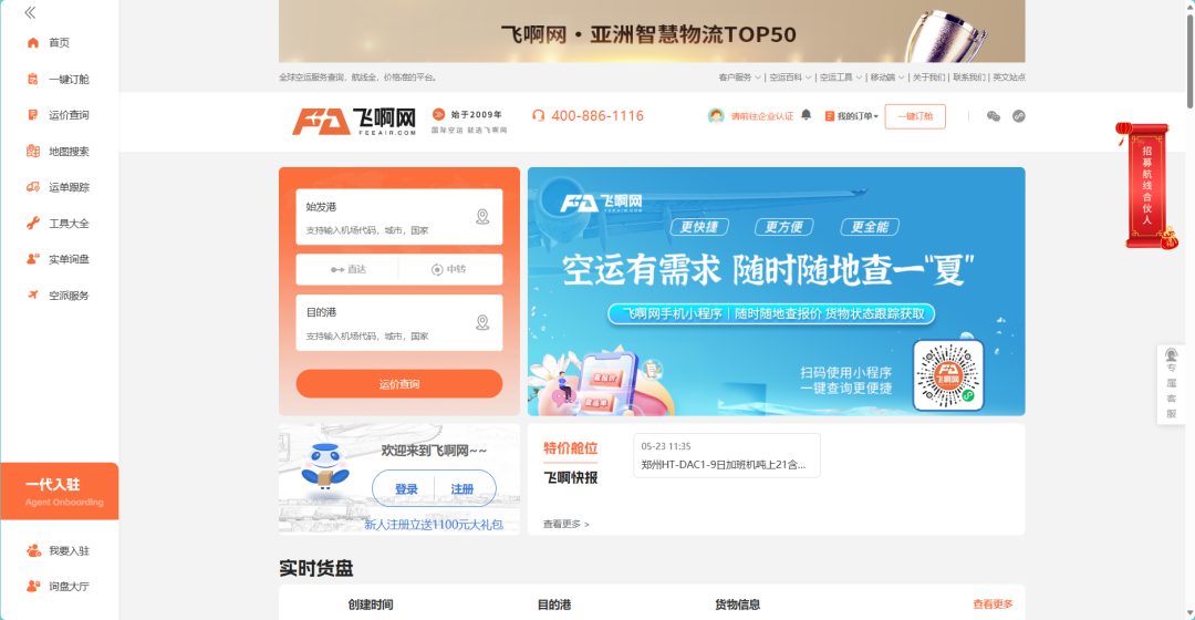 本届亚洲航空货运博览会上,飞啊网继续受邀亮相,期待能给大家带来更多惊喜,欢迎各位航空货运从业者与我们相约W5.349展台,共同寻觅行业新商机!