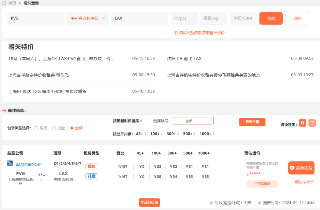 (飞啊网运价查询功能)