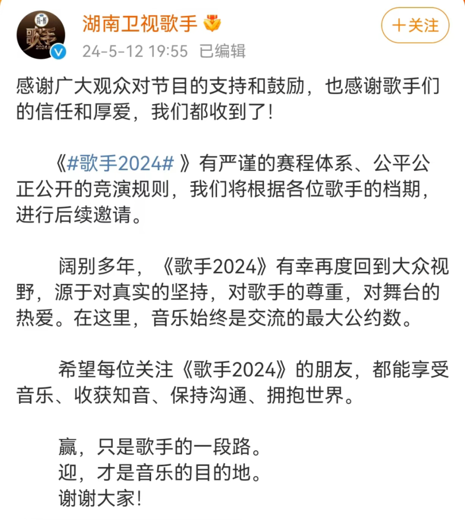 眼看着事情闹大,湖南卫视官方也不得不发出公告,称感谢大家的支持鼓励,节目有自己的竞演规则,会跟歌手们协调档期。