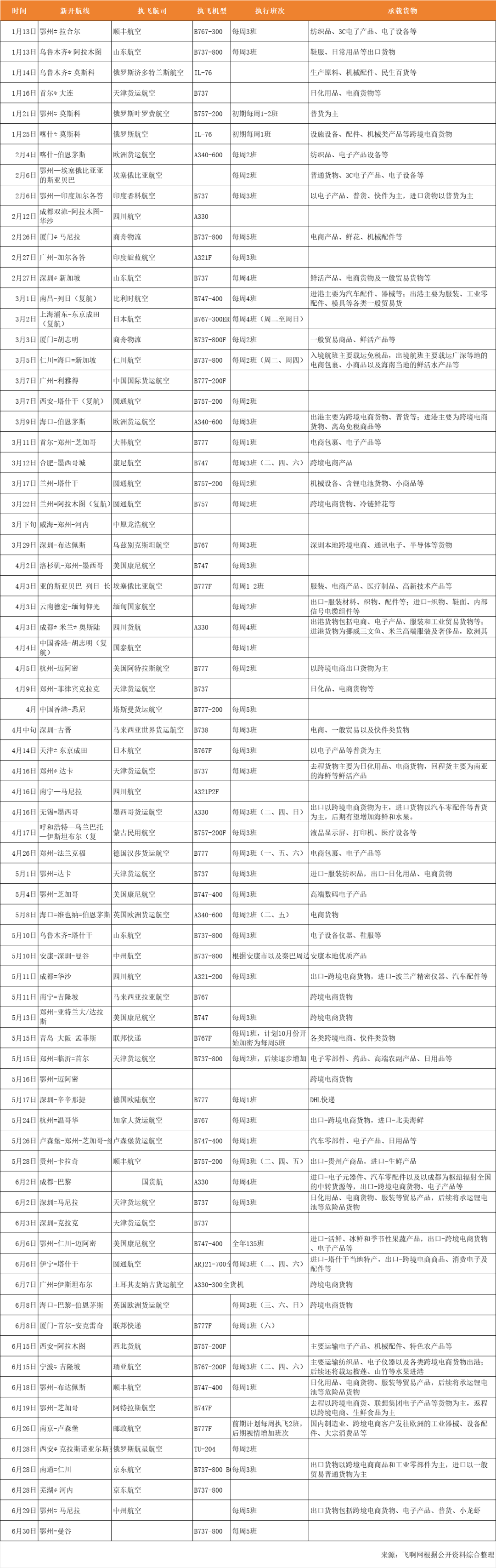 在航空货运需求上涨的背景下,新开国际货运航线与增加航空运力成为上半年众多航司的主旋律。
