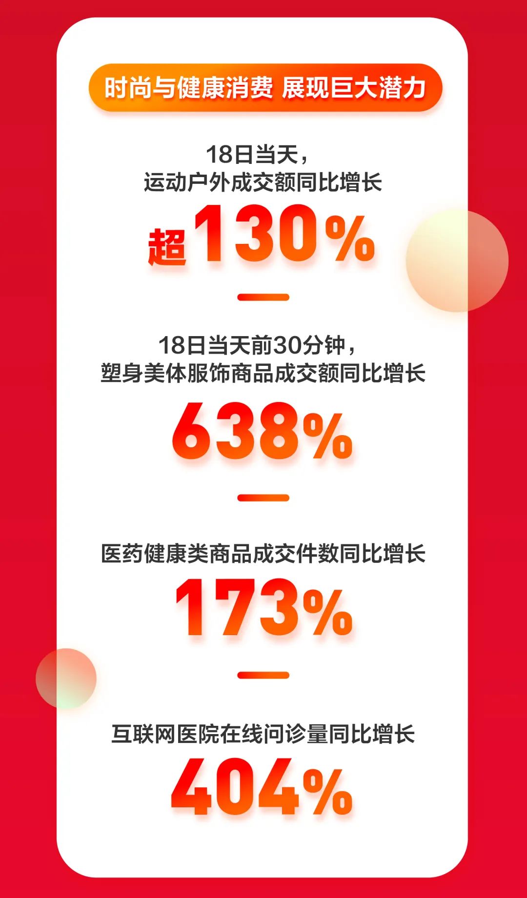 创新、贴心的服务也为今年的京东618增添不少亮点,消费者对于更高品质消费的追求再次得到满足。疫后健康消费需求被进一步释放,618期间,京东的医药健康类商品成交件数同比增长173%,京东互联网医院在线问诊量同比增长404%,京东大药房慢病用药成交额同比去年增长270%,跨境药品成交额同比增长20倍,O2O购药服务“京东药急送”成交额是去年同期的492倍。京东健康体检管家成交金额同比增长170%,体检品类成交金额同比增长269%;孕产服务品类成交金额同比增长35倍;疫苗品类成交金额同比增长45.8倍。进口保健品成交额同比增长超100%,其中特殊医用食品成交额同比增长350%,益生菌类目成交额同比增长230%。家用呼吸机成交额同比增长110%,体温计成交额同比增长超12倍。传统滋补品类的“当红明星”鲜炖燕窝成交额同比增长200%。