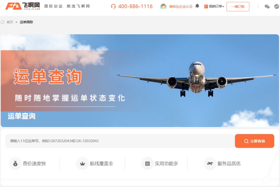 想要随时随地掌握航空货运的运单状态变化,推荐使用飞啊网的运单跟踪功能,查询速度快,航线覆盖全,服务品质优!