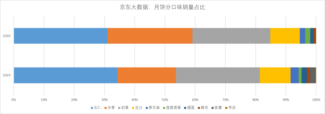 统计今年月饼口味的销量排名,结果再次令人震惊:近年来惨遭diss的“五仁馅”月饼,不但没有“滚出月饼界”,反而继续稳居销量占比第一名。