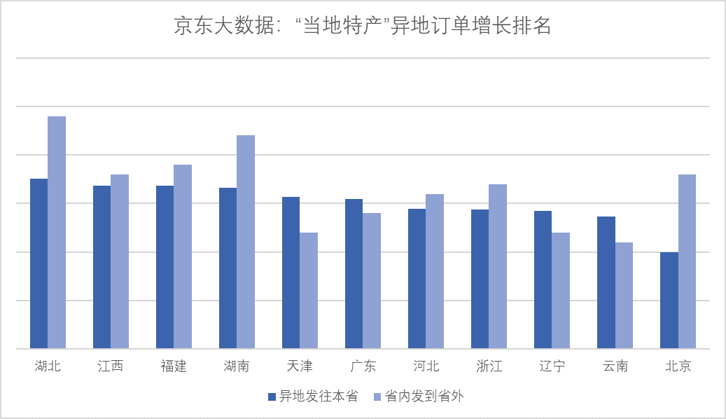 外地特产发往本省占比第一,本省特产发往外省占比第一!