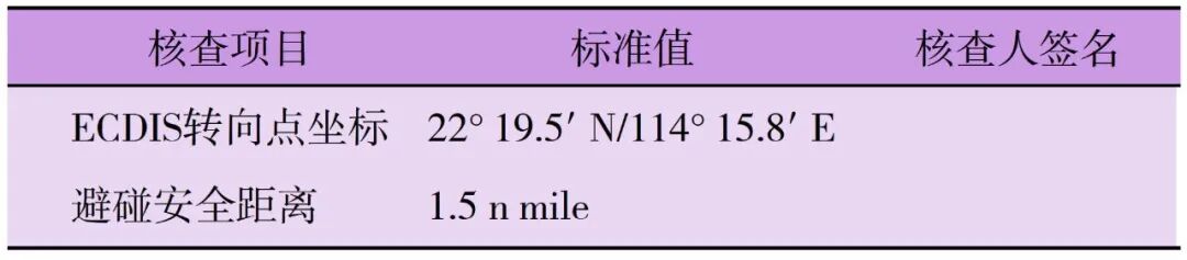 交叉核查是防范错误发生的重要手段。针对航线设定、航速调整等12项高风险操作,笔者在船舶管理实践中推行了“双人背靠背核查”机制,并配套设计了智能及自动化操作核查清单 ( 见表1 )。该清单要求二副与三副独立验证电子海图转向点坐标、自动识别系统安全距离参数等重要数据。例如,2024年某航次中,船员在执行该核查机制时及时发现了电子海图系统因数据延迟导致的转向点偏移误差,从而避免了搁浅风险。