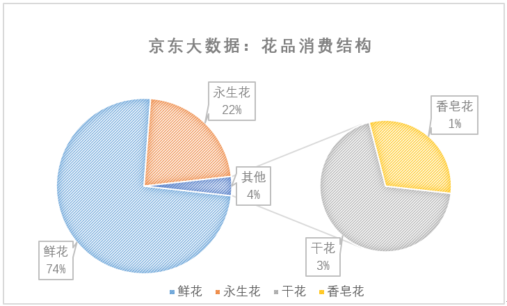 其中四分之三的消费者选择了鲜花,不过永生花、干花等的销售额同比也有一定增长。