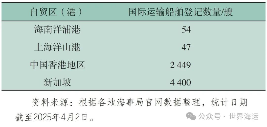 表1 几大自贸区 ( 港 ) 籍国际运输船舶登记数量