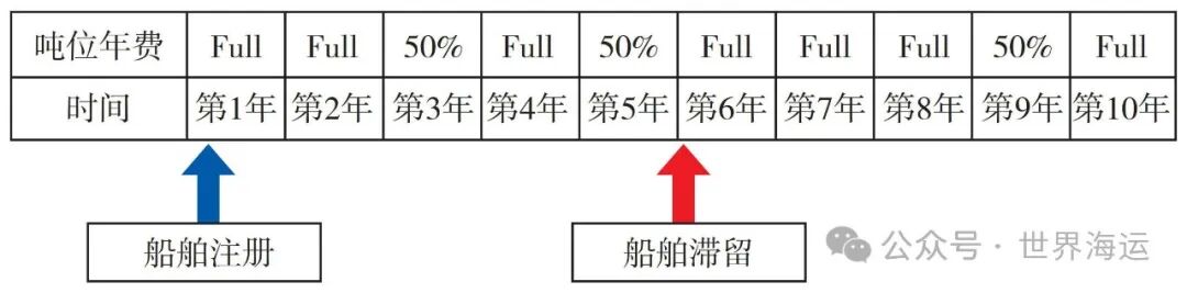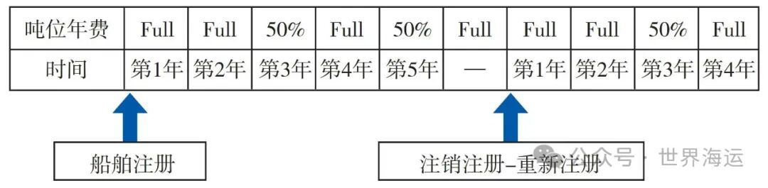 注:Full为全额指明吨位年费;50%为全额指明吨位年费的一半。