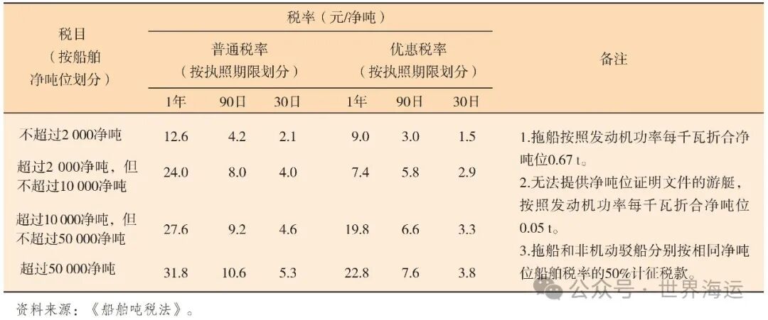 相比之下,内地的船舶吨税计算方法更为复杂,征收方式见表3。