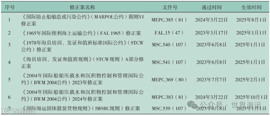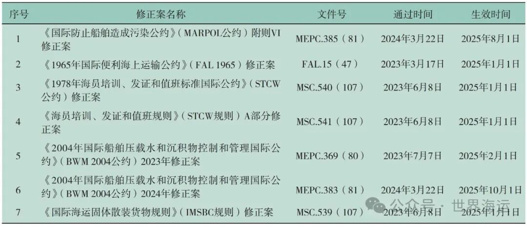 附件:2025年生效的IMO强制性文件修正案一览表