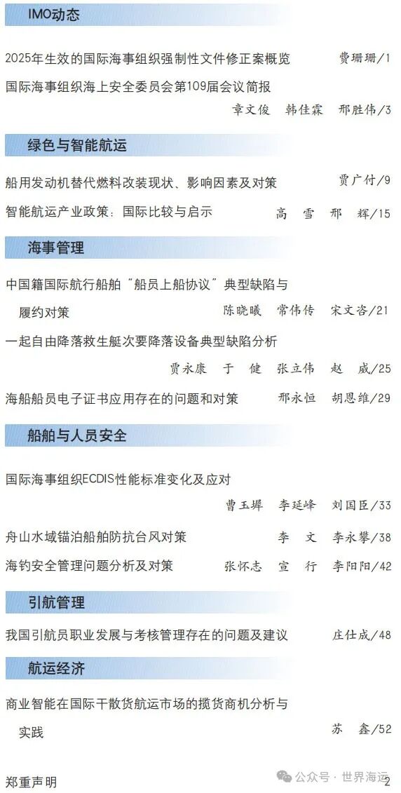 世界海运 以国际视角聚焦中国航运业发展和航运企业实践中的热点、难点问题,对国际海运经济、管理、法律和技术领域的相关问题进行专业、深入和前瞻性的解读和分析,着力搭建港航企业、贸易商、制造商和主管机关之间的信息交流平台,积极推进国际交流与合作。