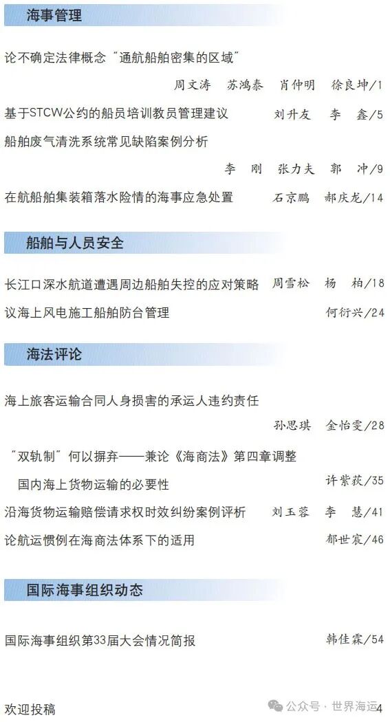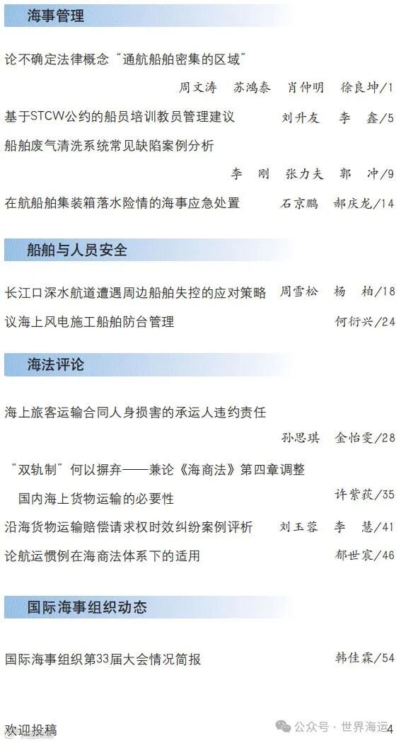 《世界海运》2024年第1期目录 世界海运