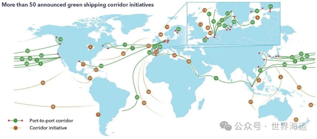 绿色航运走廊是选择替代燃料路线、推动绿色技术发展和应用的重要途径。绿色航运走廊为航运企业提供了展示及推广零排放解决方案的平台,并为整个行业构建了一个逐步实现脱碳目标的框架。框架不仅涵盖了具体的行动计划,还包含了跨行业合作、替代燃料、货运需求及政策法规等关键要素。通过参与绿色航运走廊建设,港口和航运公司可以共同推动创新、研发和示范项目,进而加速绿色替代能源的使用和发展。