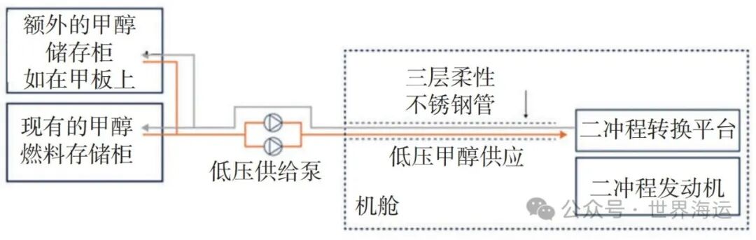 图5 瓦锡兰二冲程未来燃料 ( 甲醇 ) 改装平台及安装系统