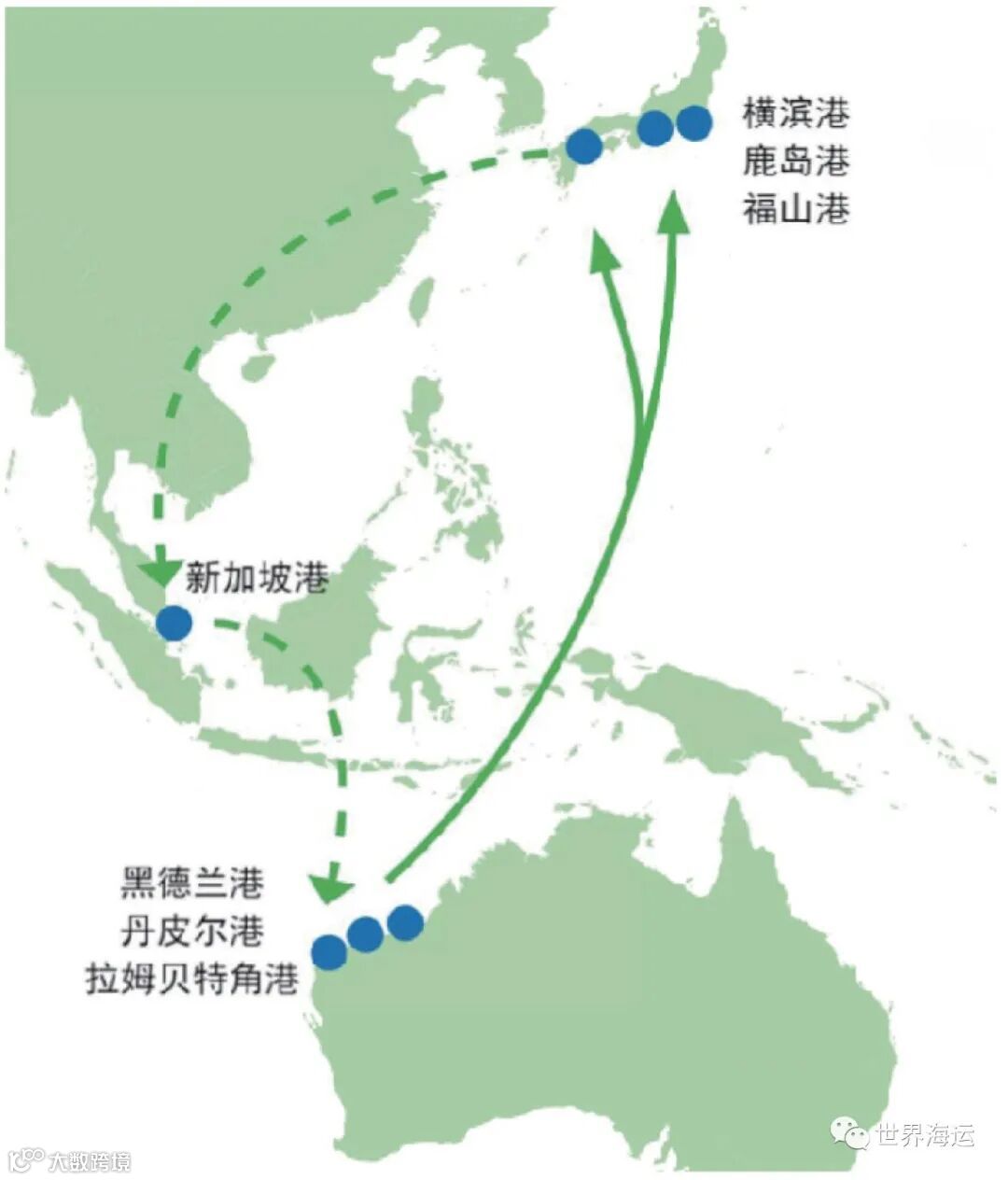 图3 澳大利亚—东亚铁矿石绿色航运走廊
