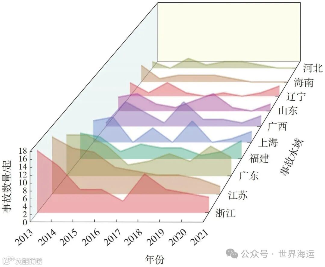 ( 2 ) 从船舶自沉事故的水域分布看,“六区一线”( 渤海水域、长江口水域、舟山群岛水域、台湾海峡水域、珠江口水域、琼州海峡水域及长江一线水域 ) 仍然是船舶自沉事故防控的重点水域,尤其是在浙江、江苏、广东和福建水域载运砂石的散货船是船舶自沉事故的重点防控对象。