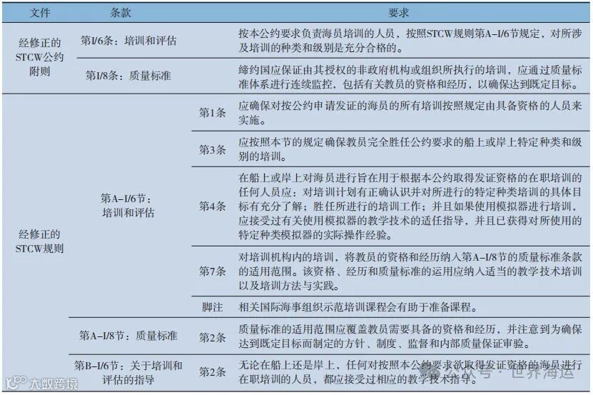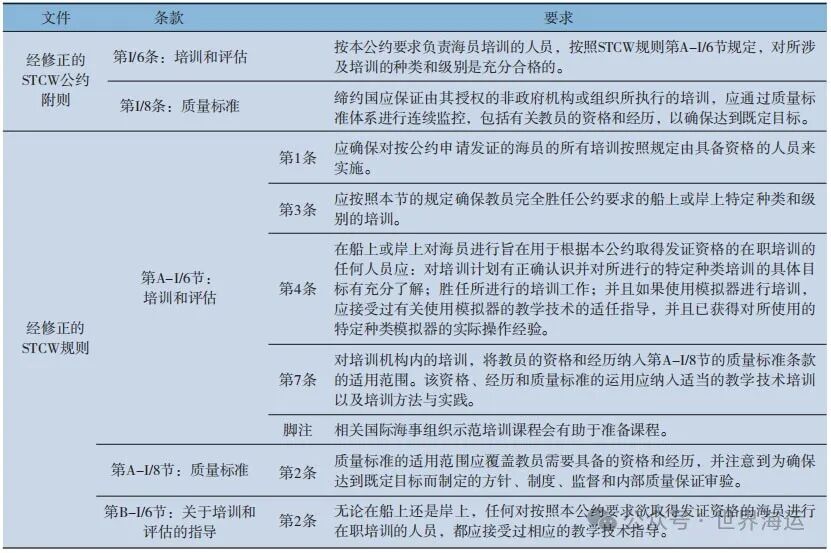 表1 STCW公约及规则关于教员的要求