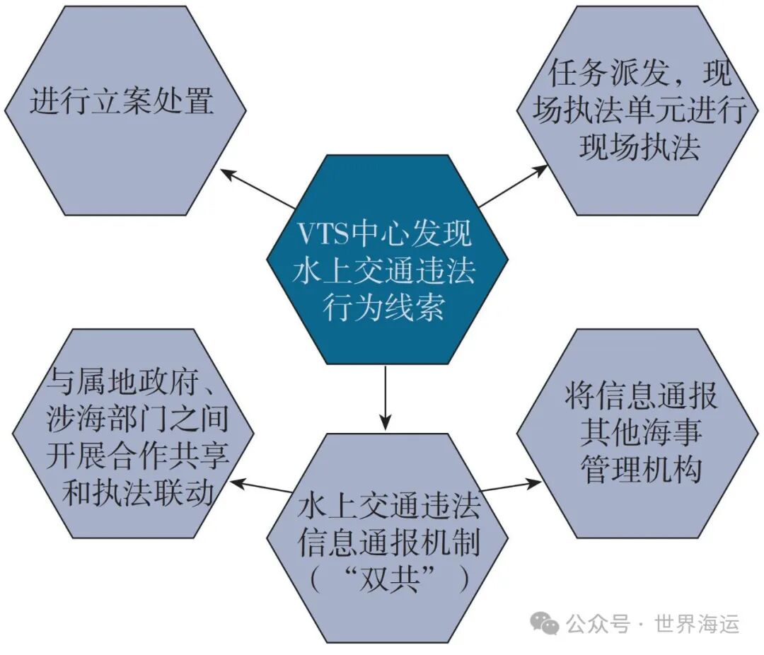 我国VTS自建设运行以来一直是海事管理机构进行水上交通安全动态监管的核心力量。近年来,随着“大交管”建设的深入,VTS在动态执法能力建设方面也取得了显著成就。例如,江苏海事局在VTS中心基础上组建水上交通安全管理中心,并在海事处执法大队基础上组建现场执法单元,实现动态执法任务统一派发;山东海事局通过设置海区工作台与VTS工作台联合值班,智能识别异常行为并开展动态执法;浙江海事局则建立“VTS+海巡艇”动态执法机制,快速有效地处置海上违法违规行为。