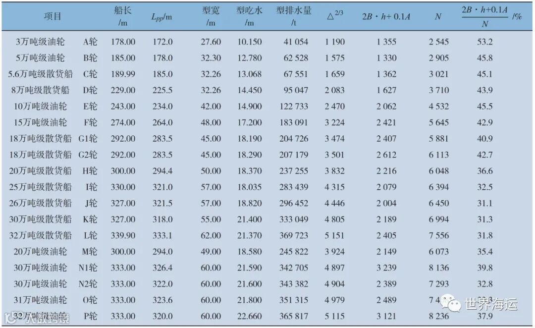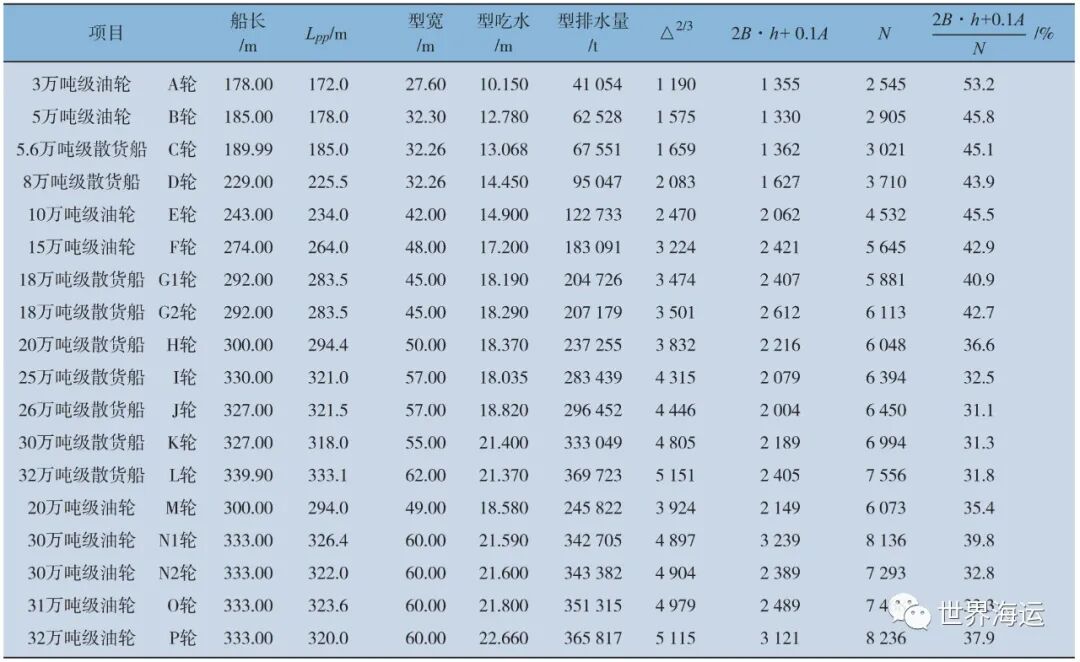 考虑到大、中型散货船和大、中型油轮均具有较大的方形系数 ( 大于0.8 ),为方便论述,在此把载重吨超过3万t的散货船、油轮定义为大、中型散装船。