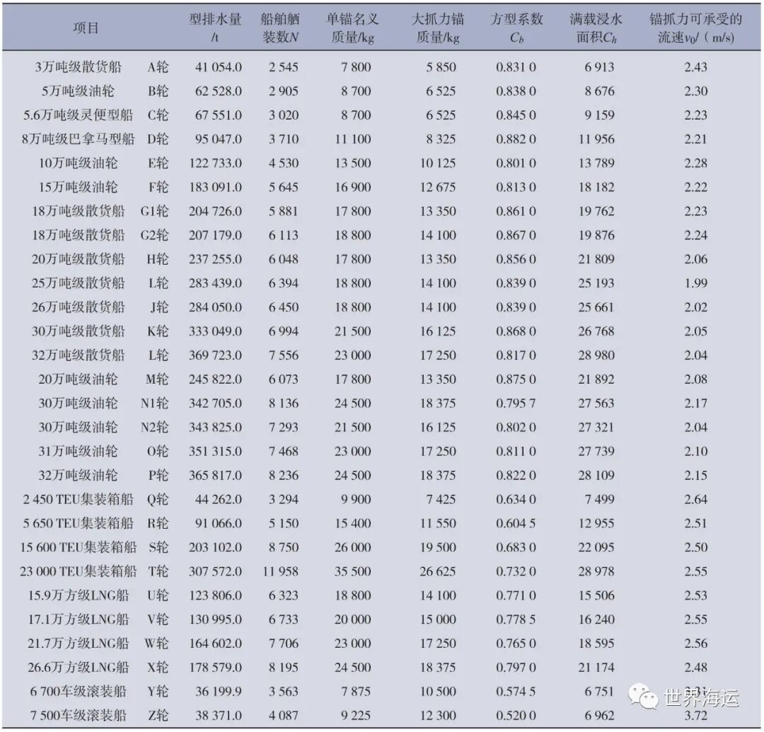 关键词:船舶舾装数;船舶舾装标准;满载锚泊船;锚泊性能