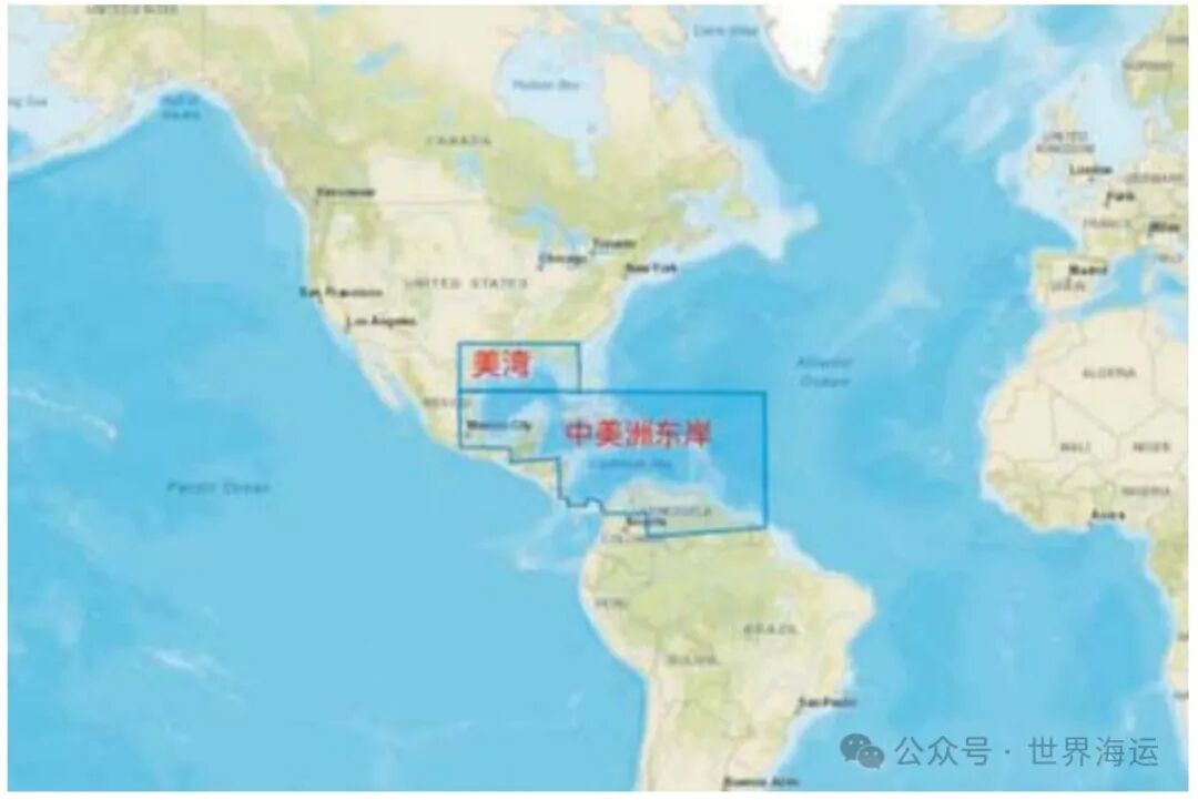 图2 美湾和中美洲东岸区域示意图
