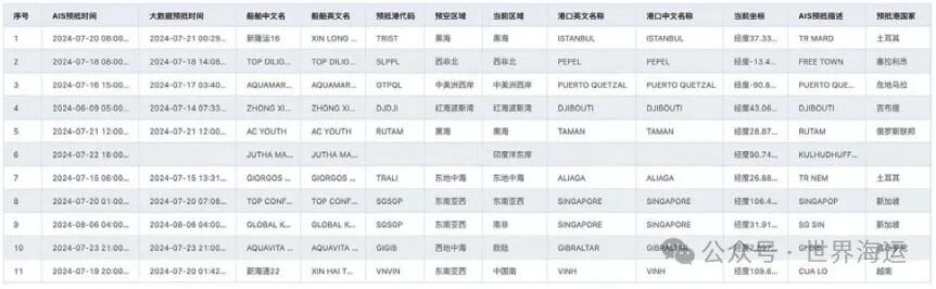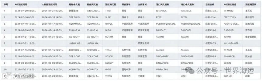 建立2万t以上的灵便型市场散货船素材库。收集市场散货船的劳氏档案数据信息,通过过滤、处理、加工获取船舶的规范信息,包括船名、载重吨、船旗、吃水等静态信息。定期追踪市场散货船的最新动态信息,建立市场散货船预抵动态信息。基于AIS、大数据等技术手段,对市场散货船的实时位置、当前航段信息、预抵港口、空/满载情况等动态信息进行识别 ( 如图3所示 )。