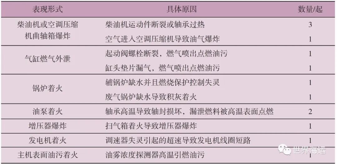 大连海事大学轮机工程学院“轮机案例分析”课程教研团队一直注重收集和整理船舶机舱火灾案例,并对这些案例进行了深入研究,目的是总结船舶机舱火灾事故原因及其他影响因素,并探讨船舶机舱火灾事故的预防措施。