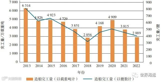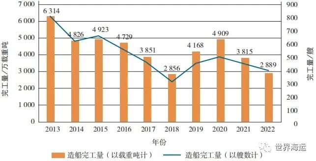 摘要:2022年,受新冠疫情、地缘政治等影响,世界经济遭受冲击复苏乏力,航运造船市场受到波及,世界造船业三大指标总体呈现“一升两降”态势。在排放标准日趋严格、传统动力船舶燃料替代的大背景下,大型船舶企业需要更为合理的经营策略来应对新形势下的激烈竞争。从短期发展看,造船业正在迎来上行周期,随着全球疫情态势的好转和航运市场的逐步复苏,船舶运输的需求越来越大,清洁能源替代和船舶智能化发展依然是值得关注的主要发展方向。