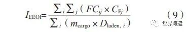 根据MEPC.1/Circ.684《船舶能效营运指数 ( EEOI ) 自愿使用导则》,计算周期内营运船舶滚动平均EEOI用式 ( 9 ) 表示: