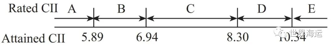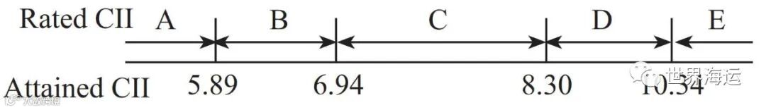 将数据代入前文介绍的G1导则公式 ( 2 ),可得到该航次Attained CII=5.66 ( 详细计算过程略 )。