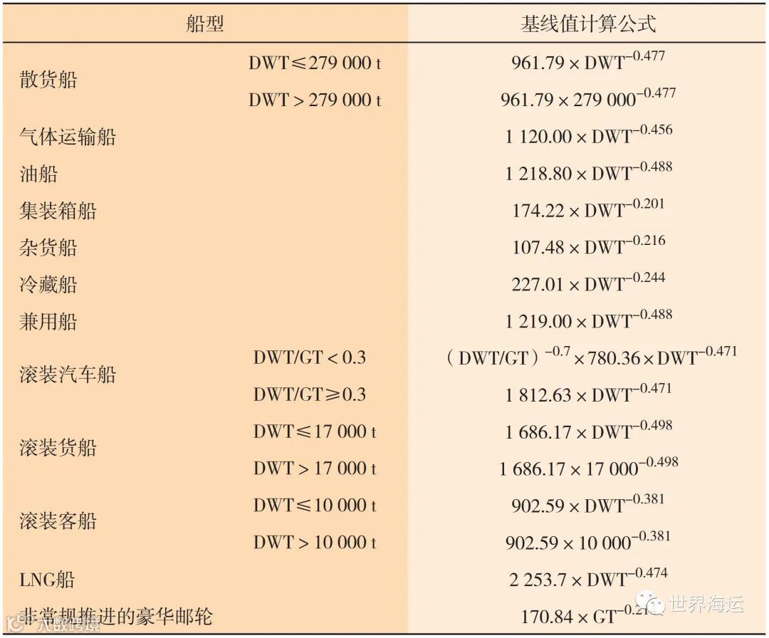 MEPC.337 ( 76 ) 决议规定各船型碳强度指标基线值的计算公式为